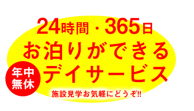 - 365日・24時間対応しております。お盆や年末年始、GW等も、通常開所しております。お気軽にご相談ください。